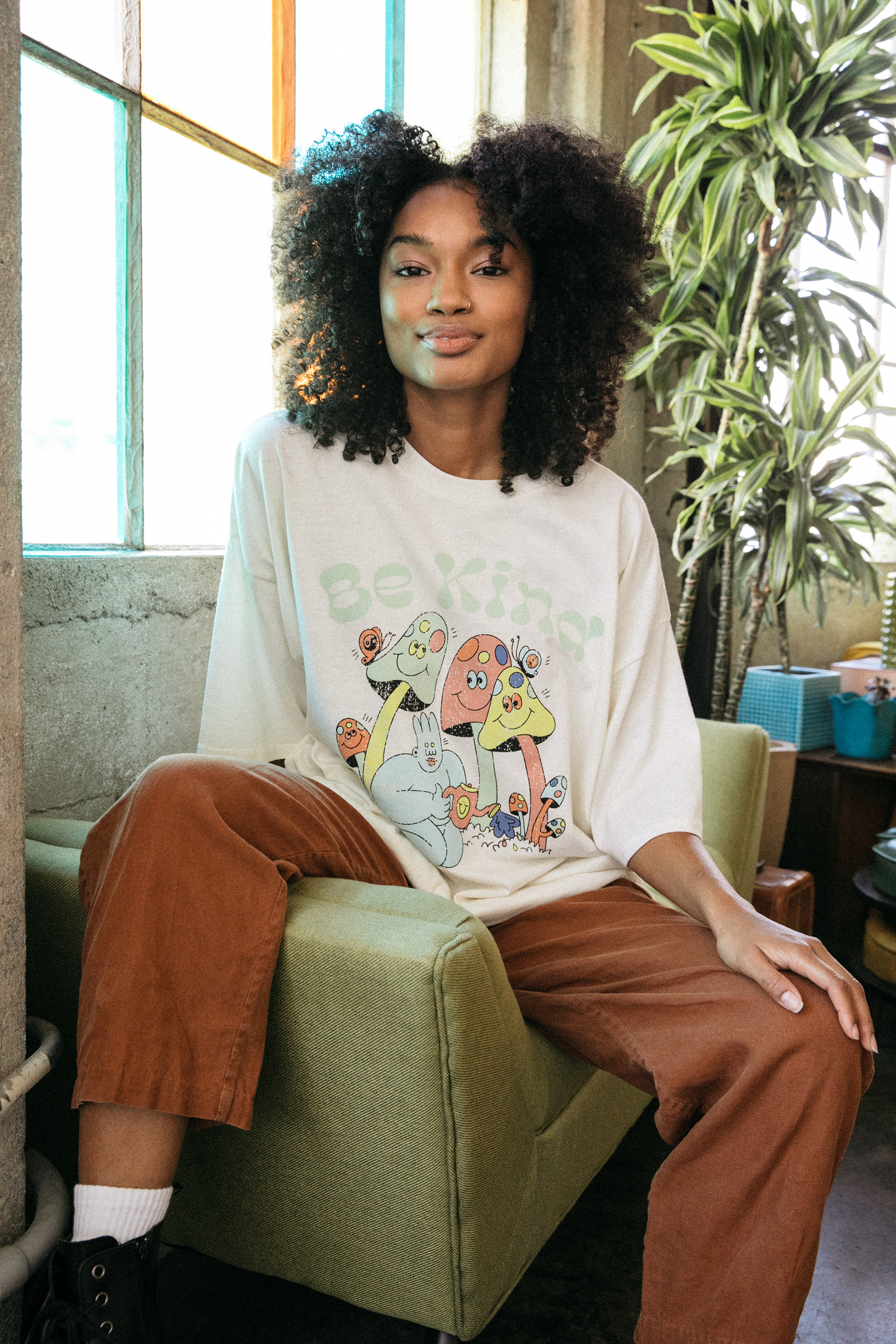 Desert Dreamer teamed up with Boise artist, Ashley Dreyfus, to create the Kindness Collection. Celebrating the importance of everyday kindness, this collection features inspiring messages and cute characters called “alter egos” from Dreyfus’s imagination. Features 100% recycled material. Illustrations: Ashley Dreyfus @Dreyfus.art Apparel Design & Creative Direction: Kristie Dzurnak Photography/Video: Lily Glass